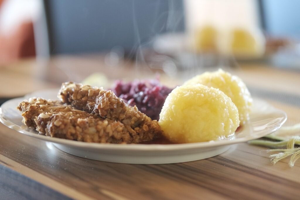 Ca. 500g mehlige Erdäpfel (Agria oder Hermes), kochen, schälen und grob würfeln. 100g Speckwürfel (oder anderes Fleisch oder Wurst oder Tofu – was eben gerade im Kühlschrank vorhanden ist) mit einer kleinen, gehackten Zwiebel sanft in etwas Öl oder Ghee … Weiterlesen