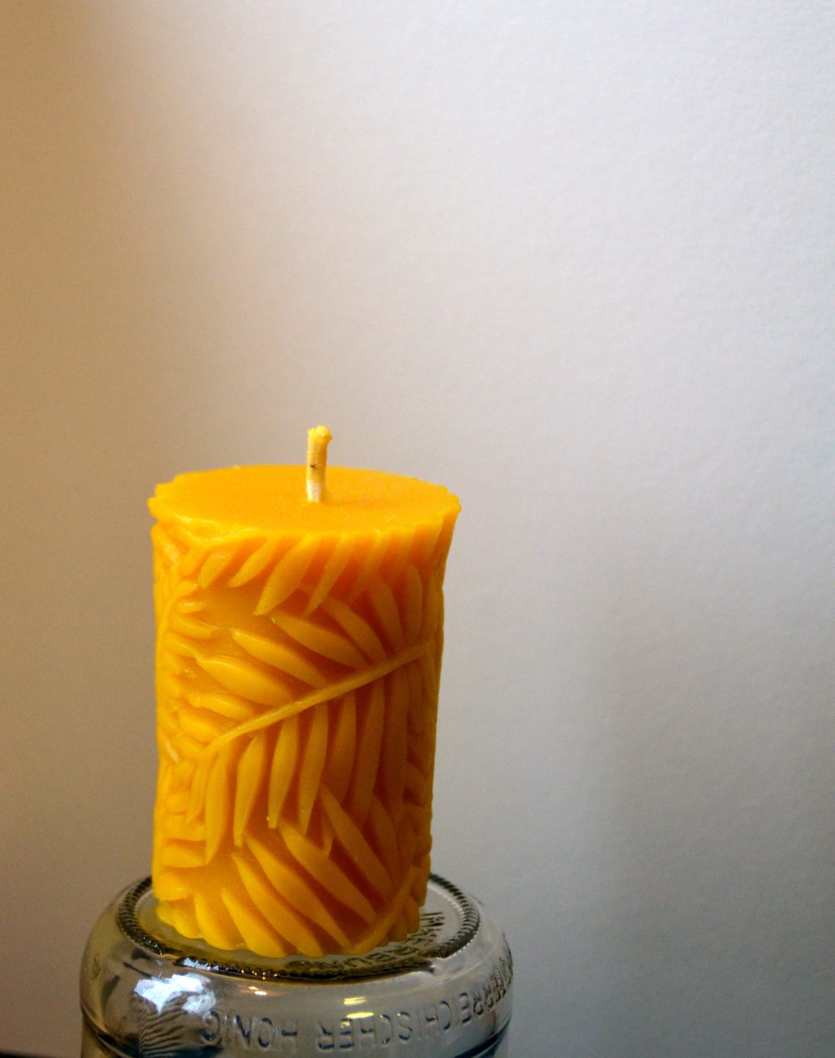 Bienenwachskerze Stumpenkerze Blätter 8 cm