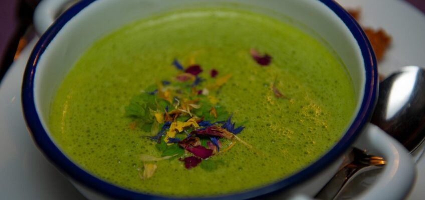 Zubereitung: Reisflocken in einem Topf trocken anrösten. Ghee, Kreuzkümmel und Kurkuma zufügen und kurz anschwitzen. Mit Brühe oder Ingwerwasser aufgießen und 10–15 Minuten sanft köcheln lassen. Kräuter grob hacken und zusammen mit Paprikapulver, Salz und einer kleinen Prise Trikatu unterrühren. Kurz aufkochen lassen. Für das Topping Kürbiskerne oder Sonnenblumenkerne (in Ghee) anrösten, mit etwas Sojasauce abrunden. Die Suppe fein pürieren, aufschlagen und mit dem Topping servieren. Diese Suppe wirkt leicht, klärend und unterstützt das Verdauungsfeuer – besonders in der frischen Frühlingszeit.