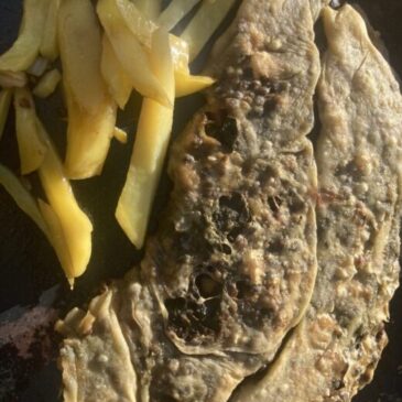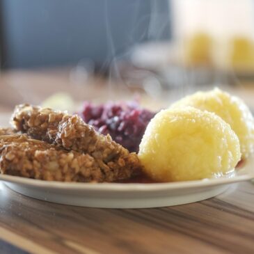 Ca. 500g mehlige Erdäpfel (Agria oder Hermes), kochen, schälen und grob würfeln. 100g Speckwürfel (oder anderes Fleisch oder Wurst oder Tofu – was eben gerade im Kühlschrank vorhanden ist) mit einer kleinen, gehackten Zwiebel sanft in etwas Öl oder Ghee … Weiterlesen