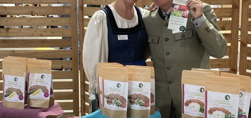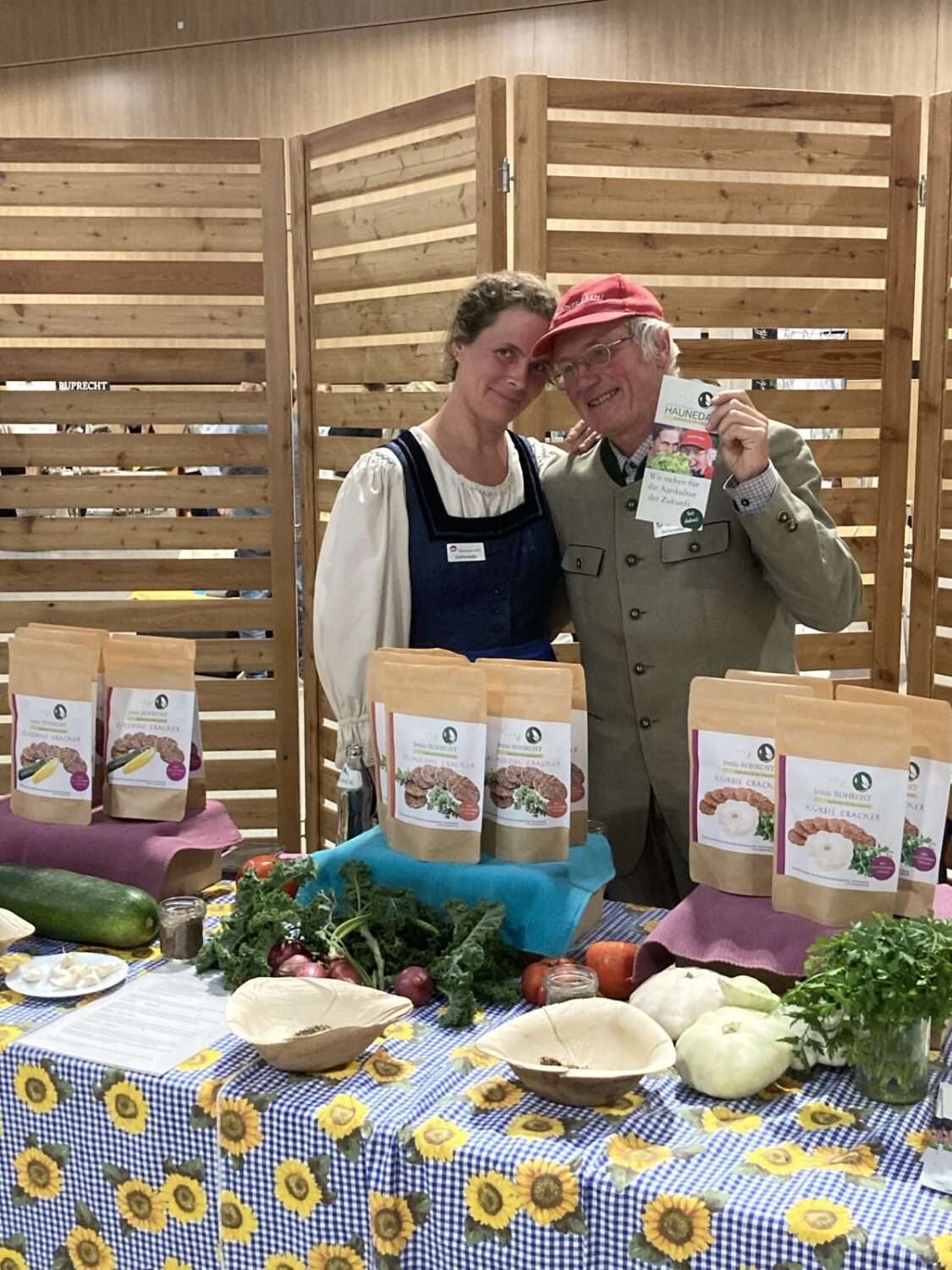 Irmi Hoheneder vom Biohof Hauneda macht etwas ganz Besonderes. Nämlich Gemüse-Rohkostcracker mit Leinsamen und Hanfsaat. Wir stehen voll drauf. Du darfst dir allerdings keine Chips-artigen Dinger erwarten. Es sind sehr fein nach Gemüse, Leinsamen, Hanf und Gewürzen schmeckende Taler. Das Gemüse wird gedörrt. Im Wasser, das dem Gemüse entzogen wird (genannt Zellwasser) werden Leinsamen und Hanf eingeweicht. Weder Gemüse noch die Cracker werden beim Trocknen über 40 Grad erhitzt. Also die volle Nährstoffbombe und echt super für unterwegs, weil sie tatsächlich Hunger stillen! Der Biohof Haudena ist sowieso sehr besonders – Gemüse wird ohne künstliche Beweässerung in Dammkultur angebaut und die Rinder liefern wertvolle Nährstoffe für den Boden, Grünkohl gibt es ganzjährig und es wird viel experimentiert. Alles wird direkt vermarktet. Zu finden sind Irmi und Rudi in Kirchberg am Wagram oder am Markt in Krems.