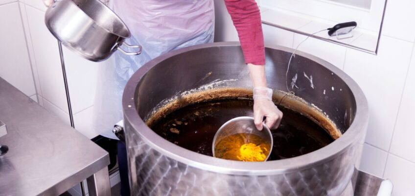Ganz anders beim Ghee von Somamed: Für seine Herstellung köchelt feinste österreichische Bio-Sauerrahmbutter MINDESTENS 20 Stunden vor sich hin. Das aufschäumende Eiweis wird dabei händich abgeschöpft bzw. setzt es sich am Boden des sehr großen Kochtopfs ab. Dann wird es – händisch – 3 mal gefiltert. Das verbleibende, wirklich reine Butterfett – wird wieder händisch – abgefüllt. Während des gesamten Ablaufs lauscht es vedischer Musik :)